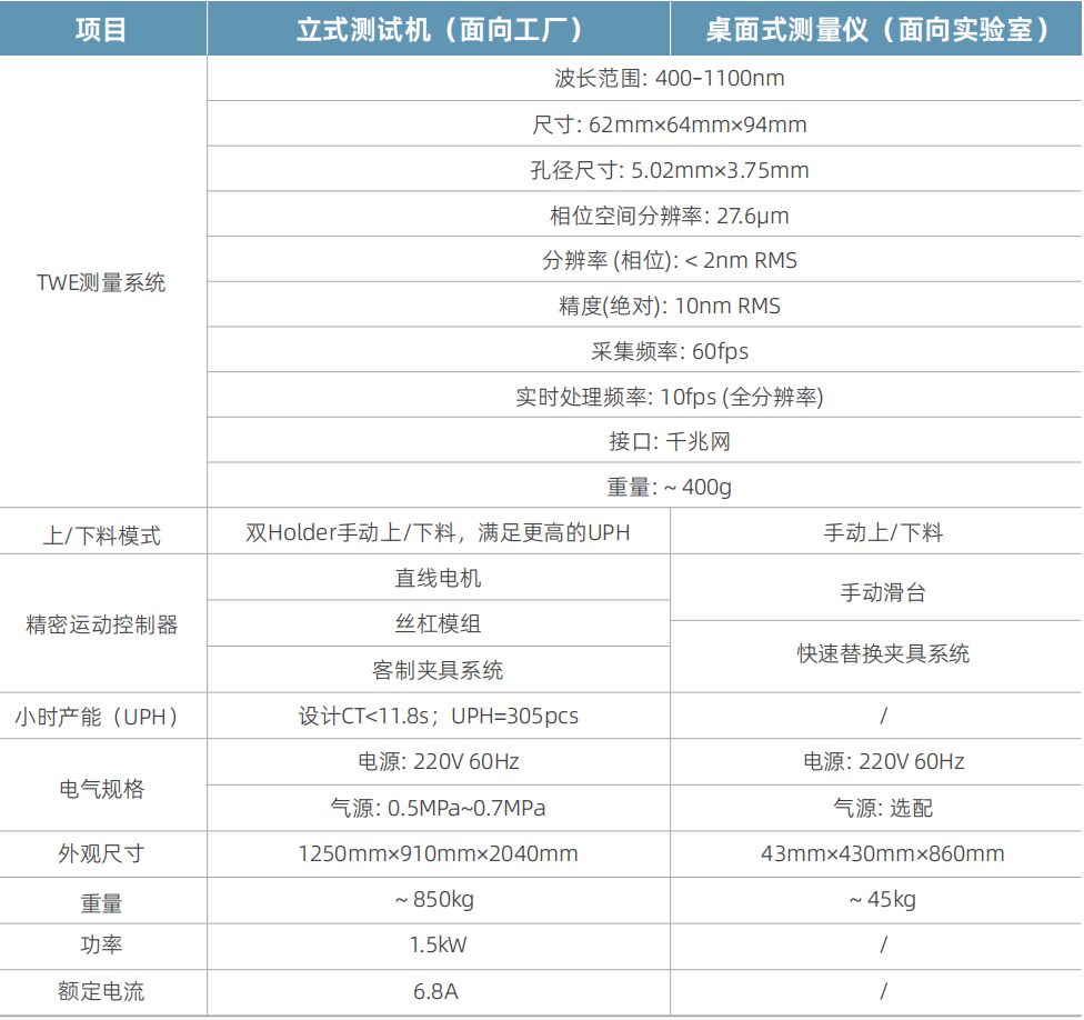 TWE主要用于評估光通過時光學元件的性能。準直光穿過DUT后,等相位平面波發生變化所產生的與理論平面之間的誤差由波前傳感器檢測到,通過計算可以得到PV、RMS、MTF、像差等結果。