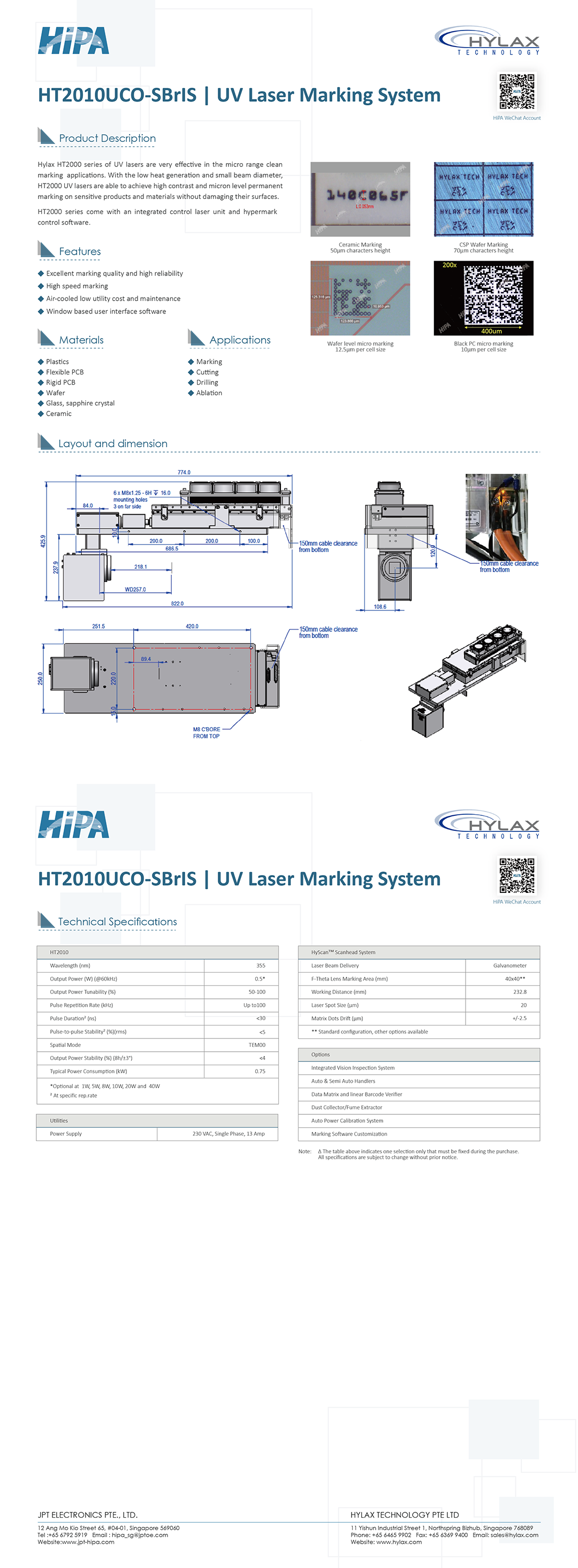 HT2000 UV lasers are able to achieve high contrast and micron level permanent