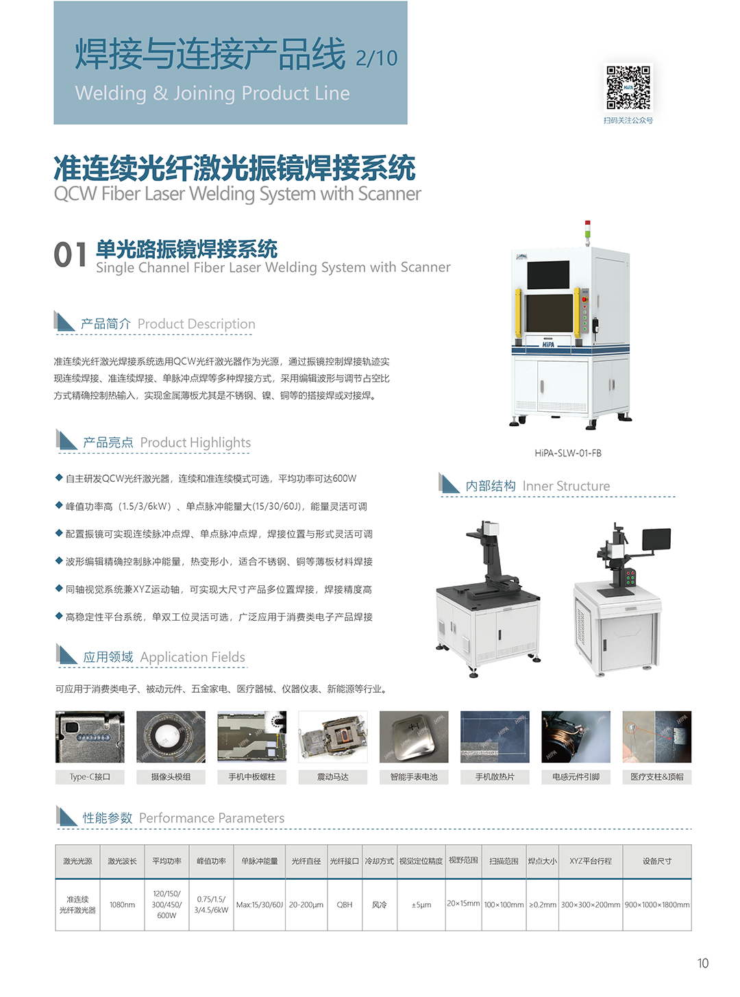 配置振鏡可實現連續脈沖點焊、單點脈沖點焊,焊接位置與形式靈活可調;